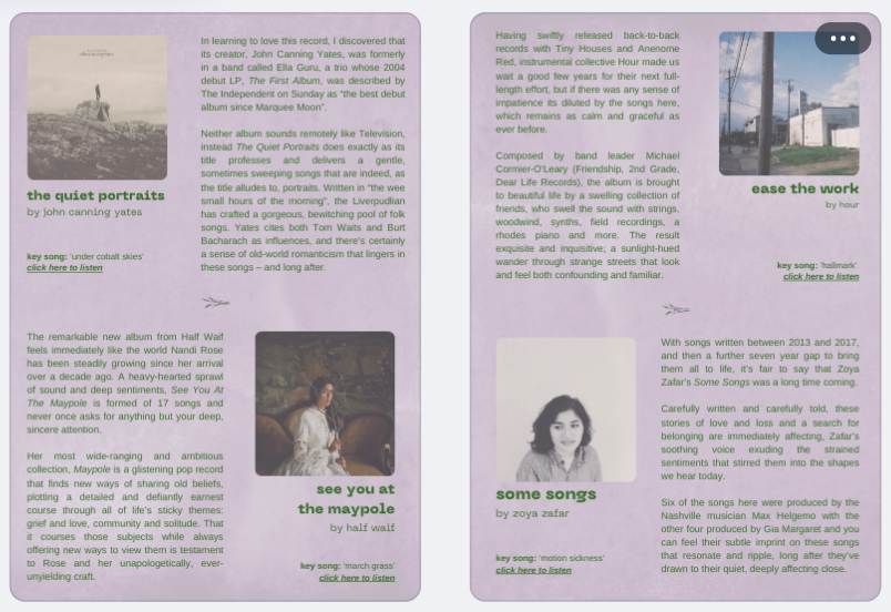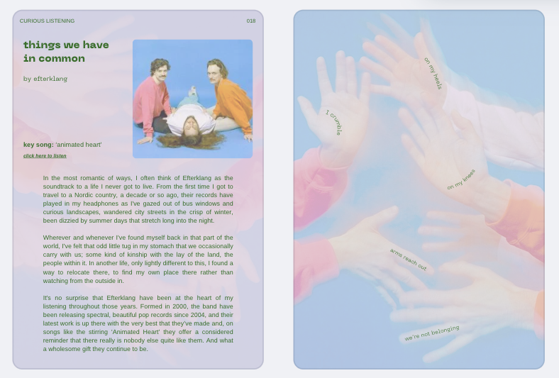 Regardless, here's a brand new zine – Curious Listening – made by me for you; 54-pages of album and song recommendations, featuring gentle design, lots of words, new interviews, and GFP's album of the year for 2024...